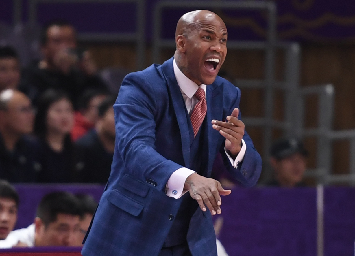 11月14日,北京控股队主教练马布里在比赛中指挥。当日,在2019-2020赛季中国男子篮球职业联赛(CBA)常规赛第五轮比赛中,北京控股队主场以107比104战胜浙江稠州银行队。新华社发(任超摄)