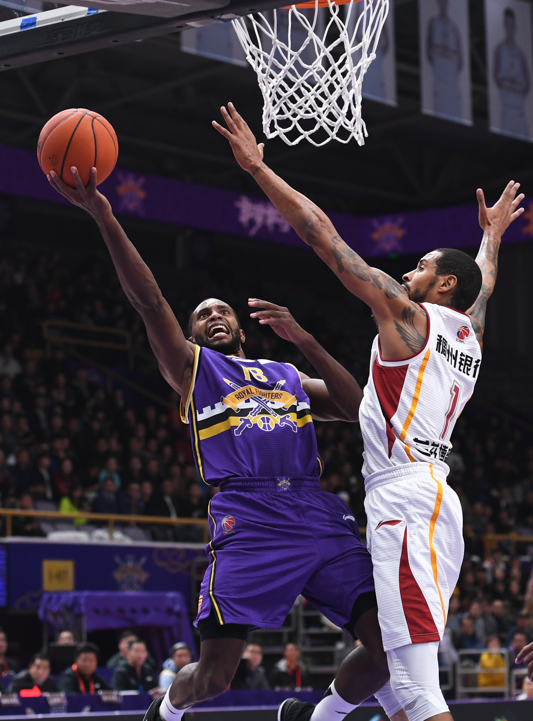 11月14日,北京控股队球员弗格(左)在比赛中上篮。当日,在2019-2020赛季中国男子篮球职业联赛(CBA)常规赛第五轮比赛中,北京控股队主场以107比104战胜浙江稠州银行队。新华社发(任超摄)