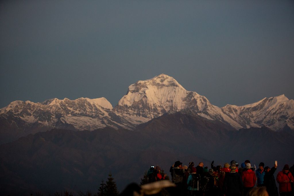 2019年11月12日,尼泊尔,游客观赏安纳布尔纳峰日出。(新华社发)