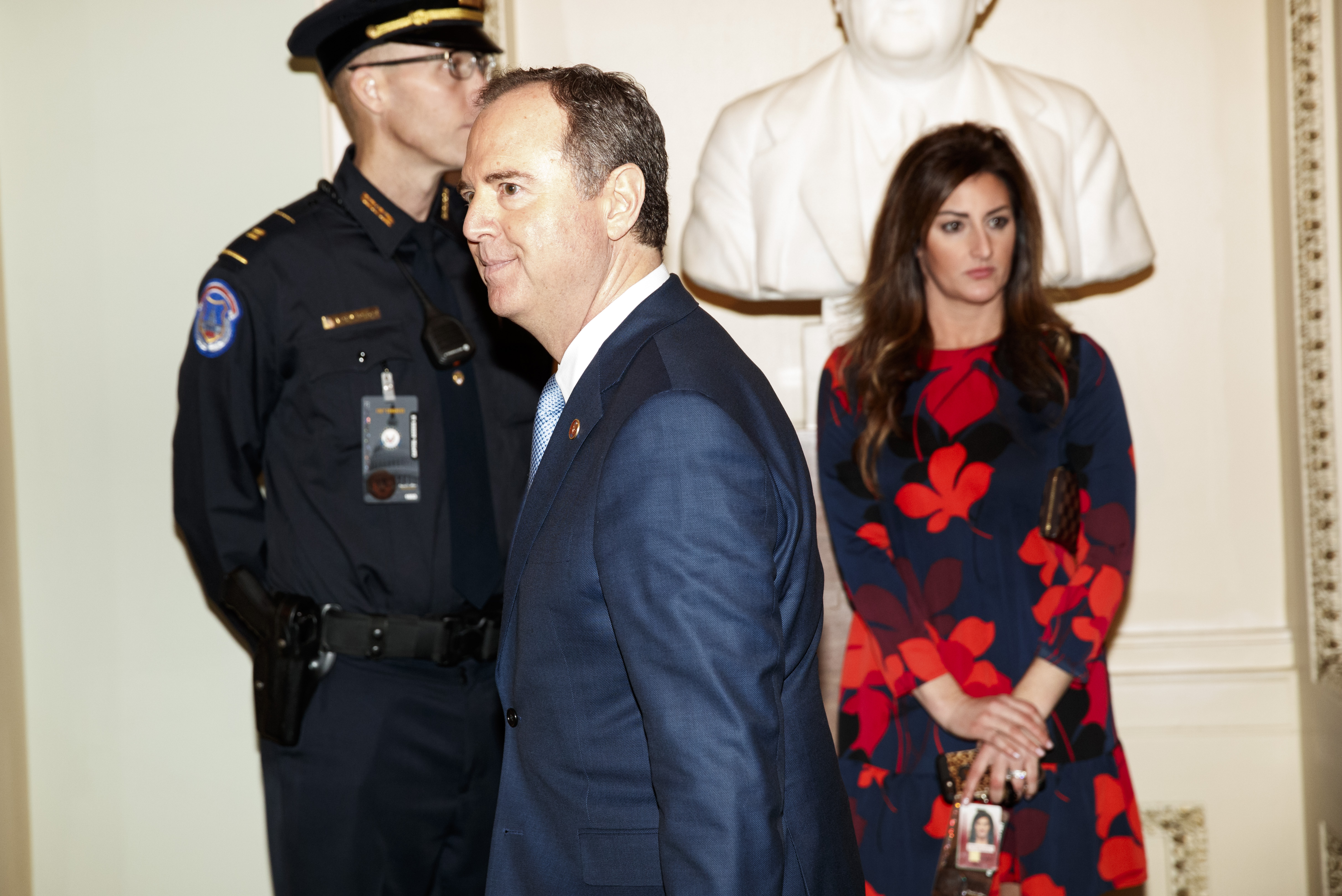 1月21日,在美国华盛顿,美国众议院情报委员会主席希夫(前)前往参议院。新华社发(沈霆摄)