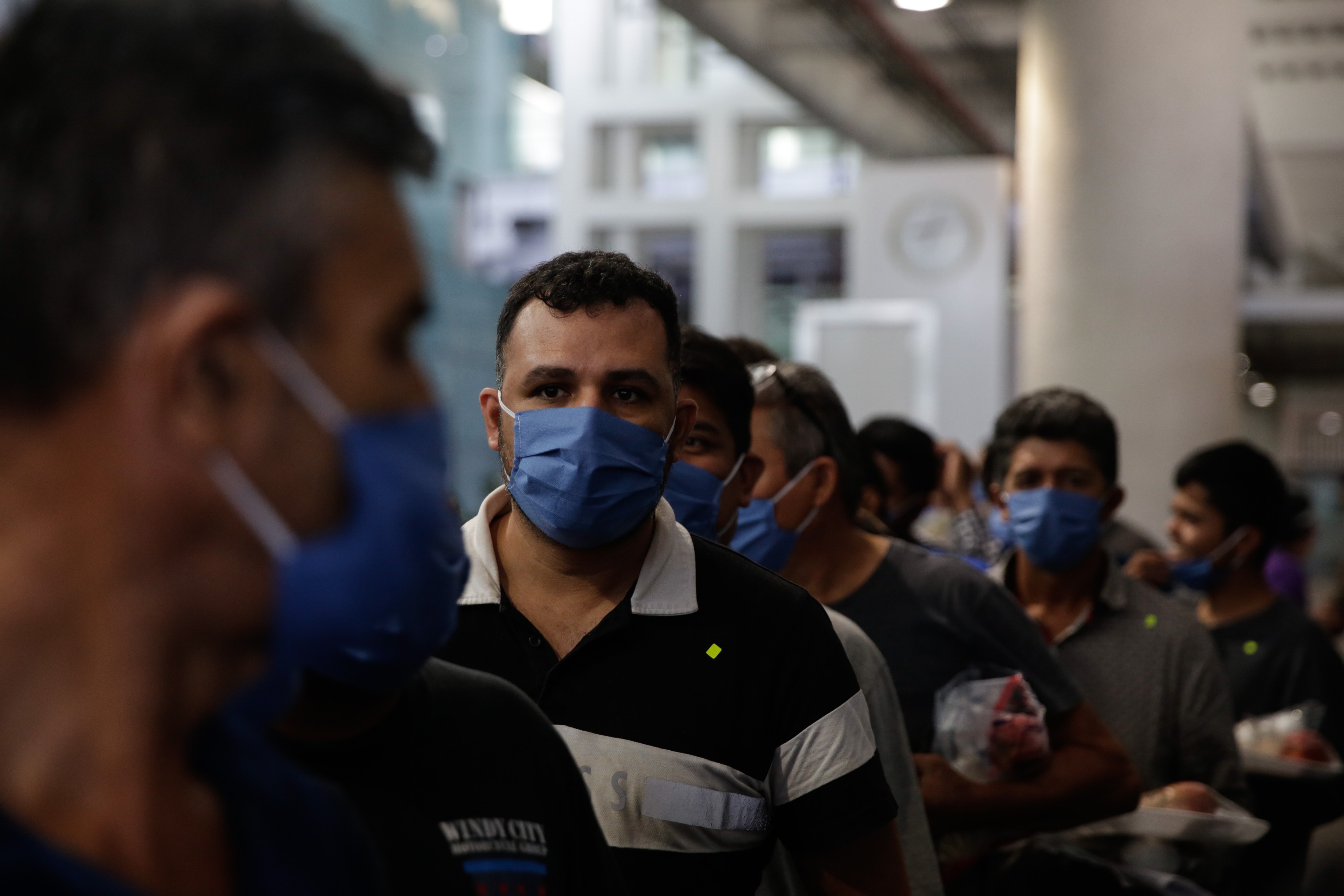 2020年5月22日,在墨西哥首都墨西哥城国际机场,被美国遣返的墨西哥籍移民在排队等待。(新华社发,弗朗西斯科·卡涅多摄)