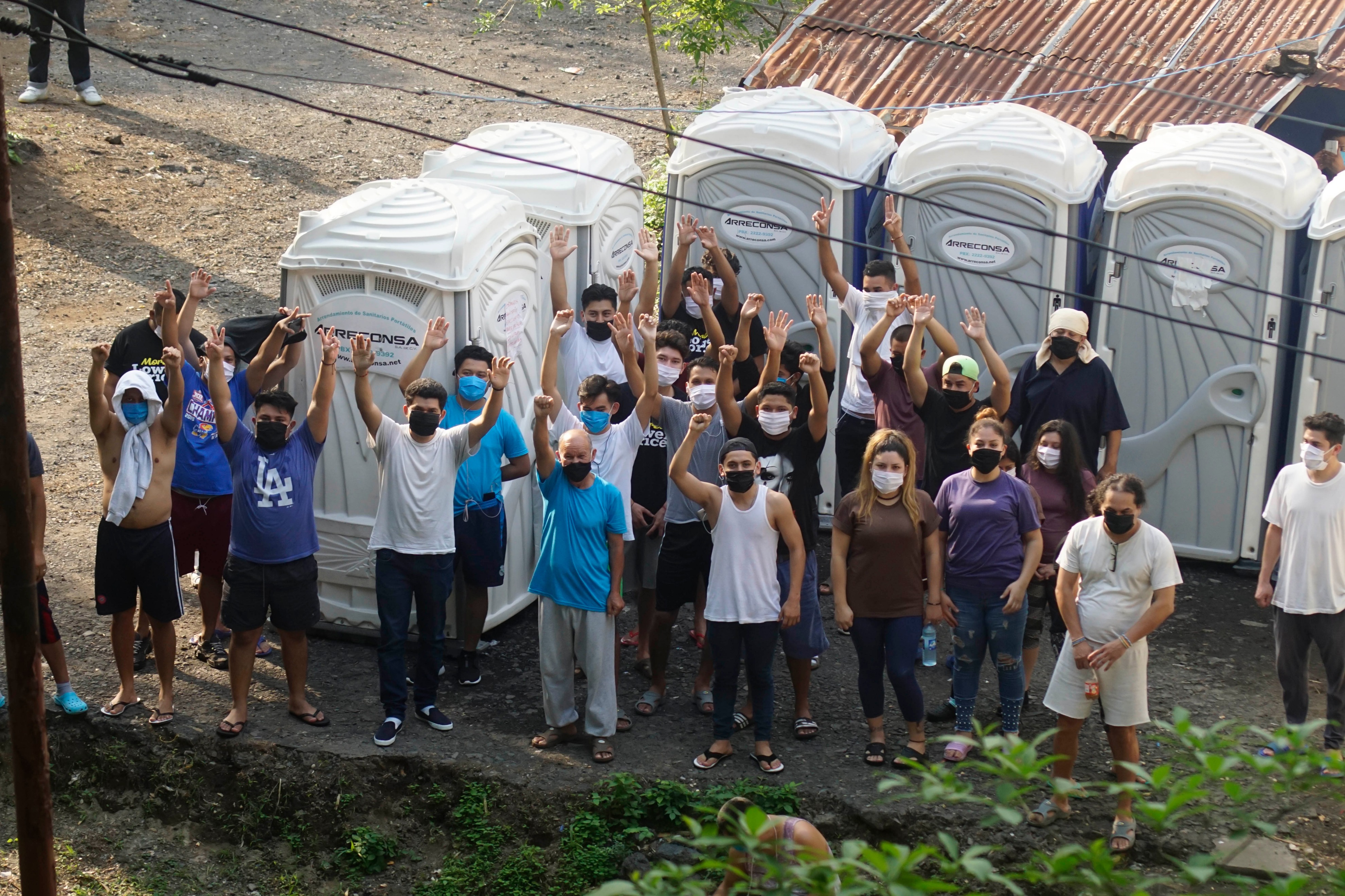 2020年5月17日,在萨尔瓦多首都圣萨尔瓦多,被从美国遣返回萨尔瓦多的移民在一处集中隔离点内招手。(新华社发,亚历山大·培尼亚摄)