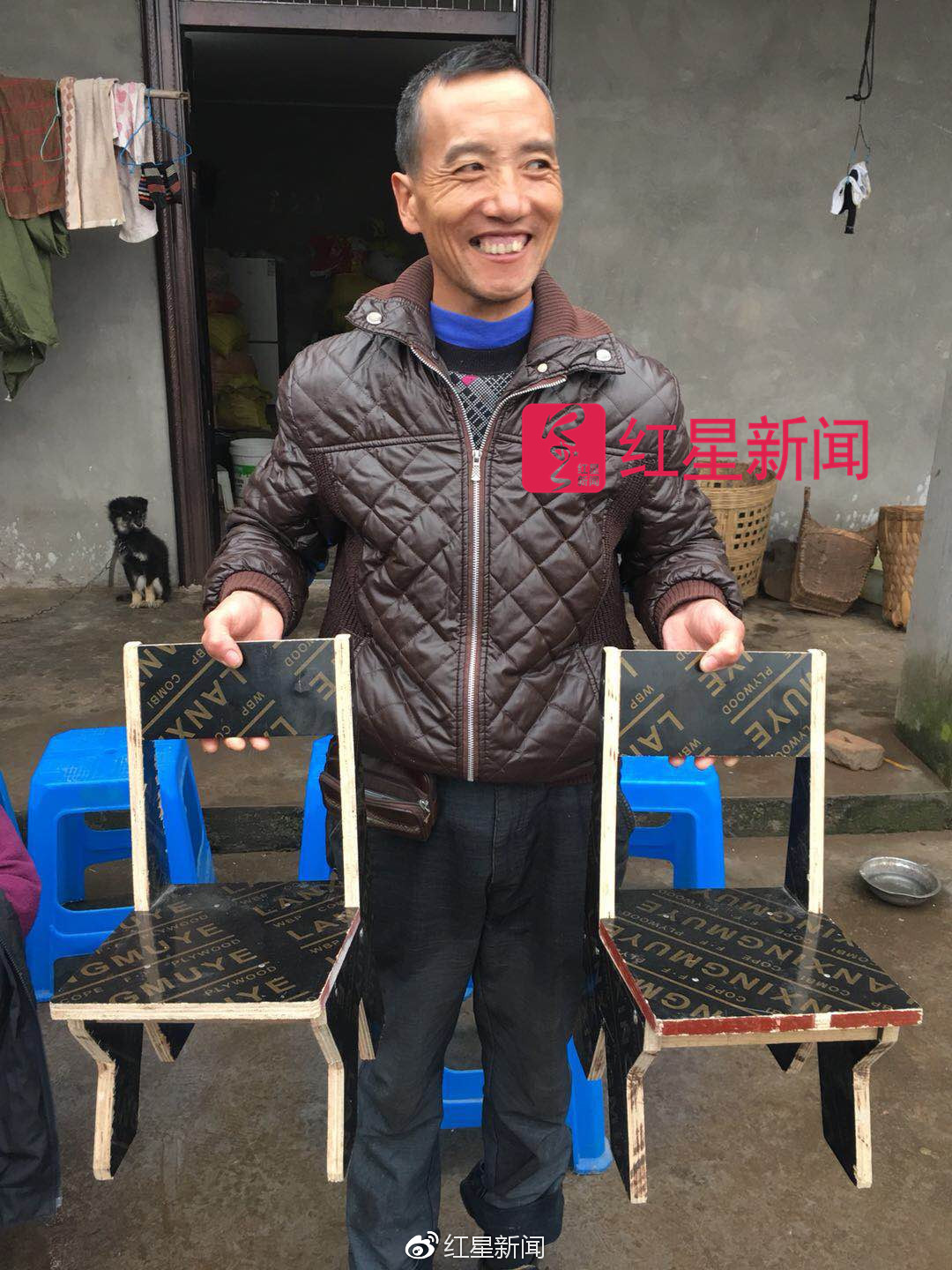 岳定明说不知道自己成了“网红”,并告诉记者凳子是因为在外地务工时看到工地上工友们做了有靠背的木凳后,砰然心动,“我想我家孩子们写作业的凳子能有个靠背就好了”。