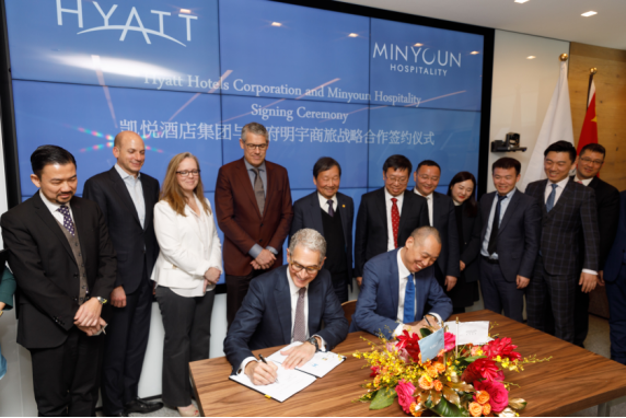 今(28)日,天府明宇商旅与凯悦酒店集团宣布,双方于美国芝加哥签约,正式结为战略合作伙伴,携手扩张凯悦旗下凯悦嘉轩、凯悦嘉寓等酒店品牌在中国市场的规模,天府明宇商旅成为中国首家获得凯悦授权许可的特许经营酒店第三方管理公司。双方同日签署三个项目的特许经营协议。