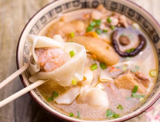 它家抄手口味还是多,海味的汤底用干鱿鱼,干虾仁,香菇,笋片,猪肉吊成的,还有清汤、红汤和怪味。但独独没有红油干拌抄手,全是有汤的。