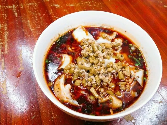 它家的豇豆炒手算是比较特别的,类似于豇豆面的做法。豇豆和肉末是成都人特别喜欢的下饭菜,拿来下抄手,不仅好吃,口感也更丰富。