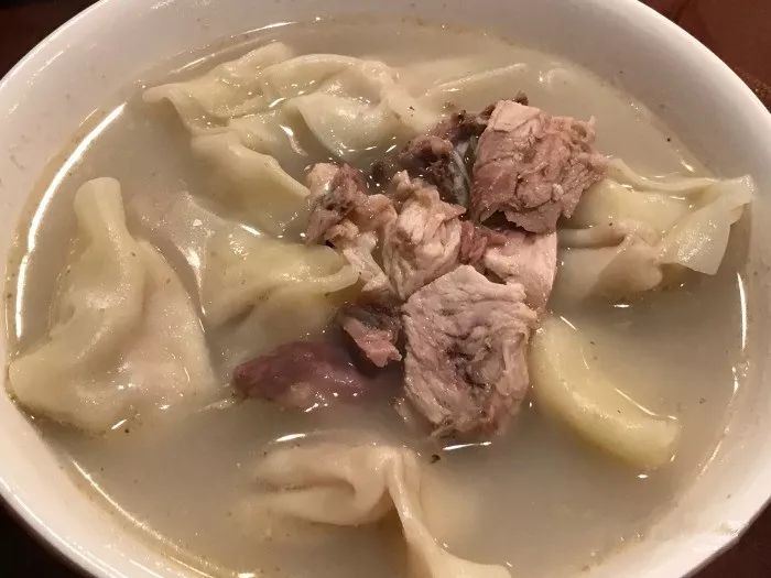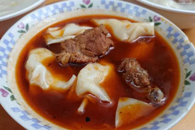 比如,牛肉抄手的浇头是笋子烧牛肉,笋子鲜嫩,是那种非常传统的味道。而排骨抄手的排骨在嘴巴头抿一转,出来的就是净骨头了!