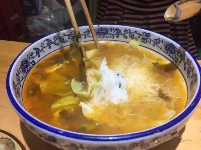 而且细米粉煮的刚刚好,粗细合适,煮到不会断开,很满意。其次是口味控制得很好,牛肉和羊肉,粗粉和细粉都吃过了,都很美味。汤也是可以秒杀外面的种种羊肉粉,熬得特别鲜香,不是那种全部由味精鸡精堆砌的味道。酸菜牛肉粉的酸菜酸味适中,不会太过分的盖掉牛肉的味道,简直是满意啊。还有,桌上的小米辣加进去也是好吃的啊。