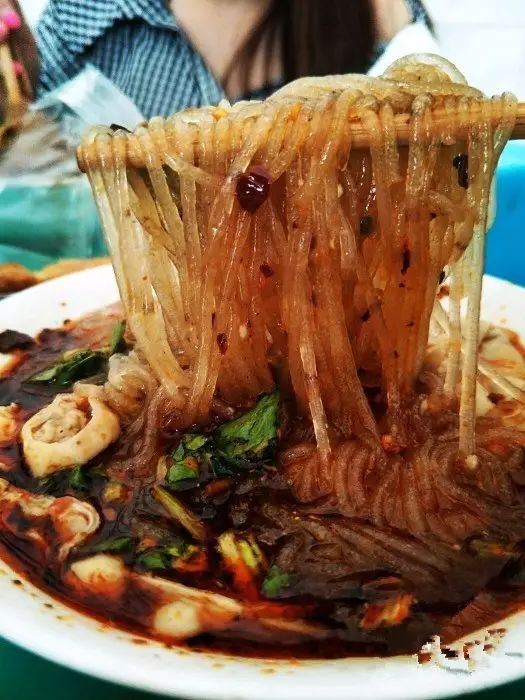 第一口基本不会有什么差池,因为是红味,口味厚重,初入口,麻辣味的刺激使味蕾觉得畅快淋漓。就像品位红酒需要分前中后的口感那样,一份肥肠粉好吃与否也要看开头到最后整个过程的不仅是看第一口。第一口只能直观的体会出的是辛香料的味道,辣椒将就不够香。其次注意力会转到粉上,他家的粉耙而不断,稍有韧性,粉不错。肥肠粉的粉儿非常好,滑而不硬,汤汁浓厚香气十足啊,不过环境一般般,价格便宜,有超值感。