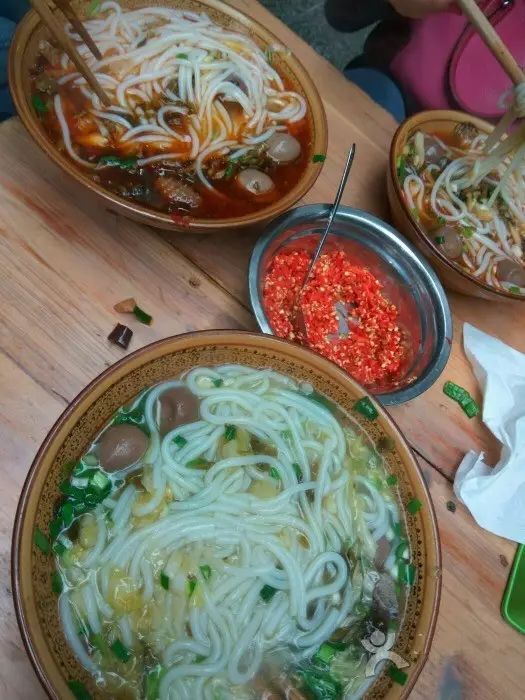 这家店的粉改良过了、配料除了肥肠,还加了鹌鹑蛋、火腿肠,应该是现在周边餐饮竞争激烈,老板也要搞点花活吧。味道比较淡、适合游客,粉是手工的、还是比较有嚼劲,就是红油不是很香。