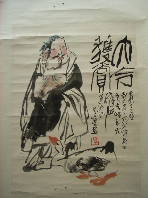 黄永厚的人物画独具一格,他笔下的魏晋人物,长发纷飞,衣裾飘扬,袒胸露腹,粗砺怪诞,一副孤高傲世的架势。了解黄永厚的人都说他画的是自己,刘海粟给他的条幅是“大丈夫不从流俗”。