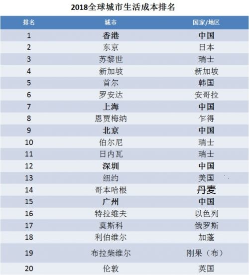 ▲来源:美世2018全球生活成本调查