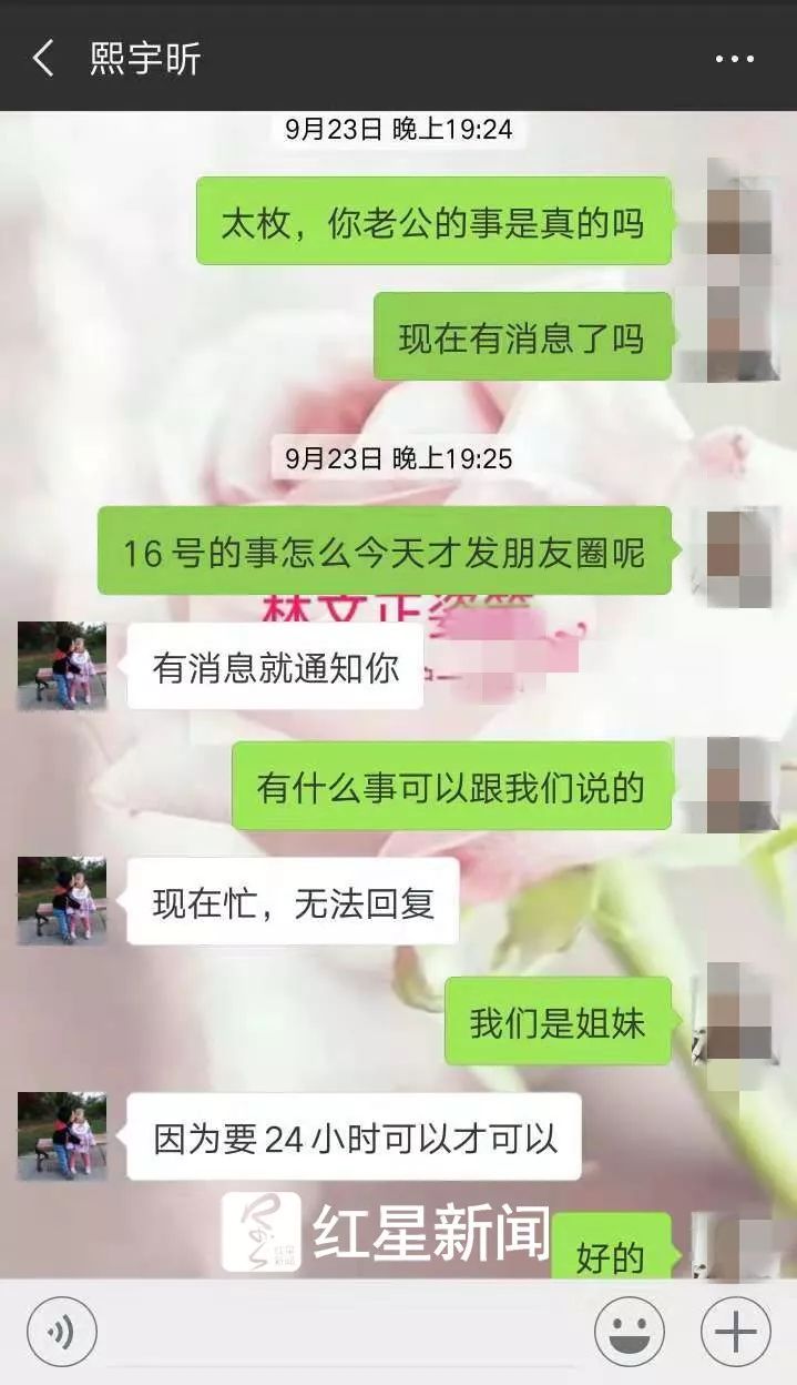 结果第二天,何某就彻底失去联系。但戴某花并没有将丈夫失联的消息告诉娘家人,直到9月23号,戴新艳在朋友圈看到戴某花发布的寻人启示才知晓这事。戴新艳诘问堂姐“怎么今天才发朋友圈?”戴某花的回复是“因为要24小时才可以”。