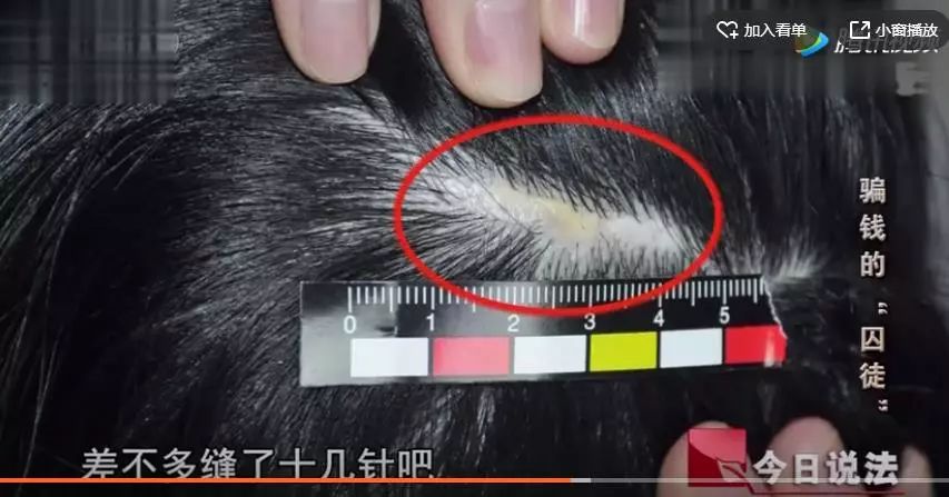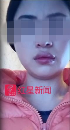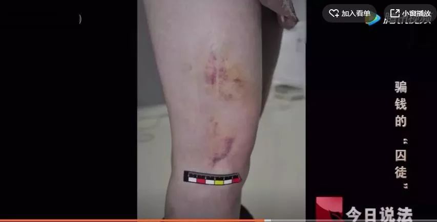 ▲任欣(化名)当时展示身上的伤痕 央视报道截图