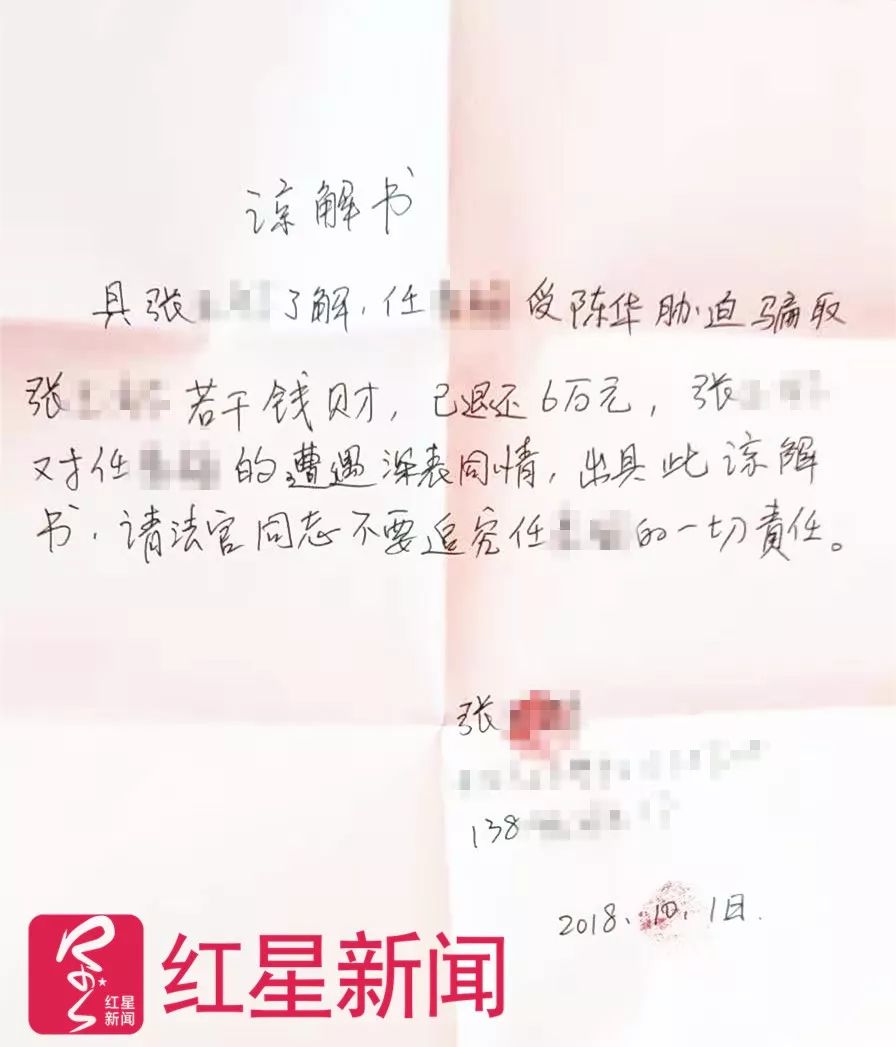 有受骗者向女方寄来谅解书