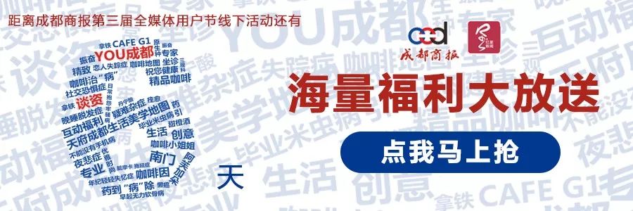在用户节现场,除了亲身体验一把“咖啡治病”,还能享受额外福利。关注YOU成都公众号现场买咖啡即可享受8折优惠。