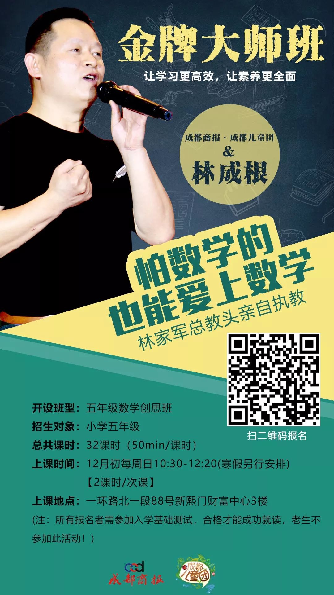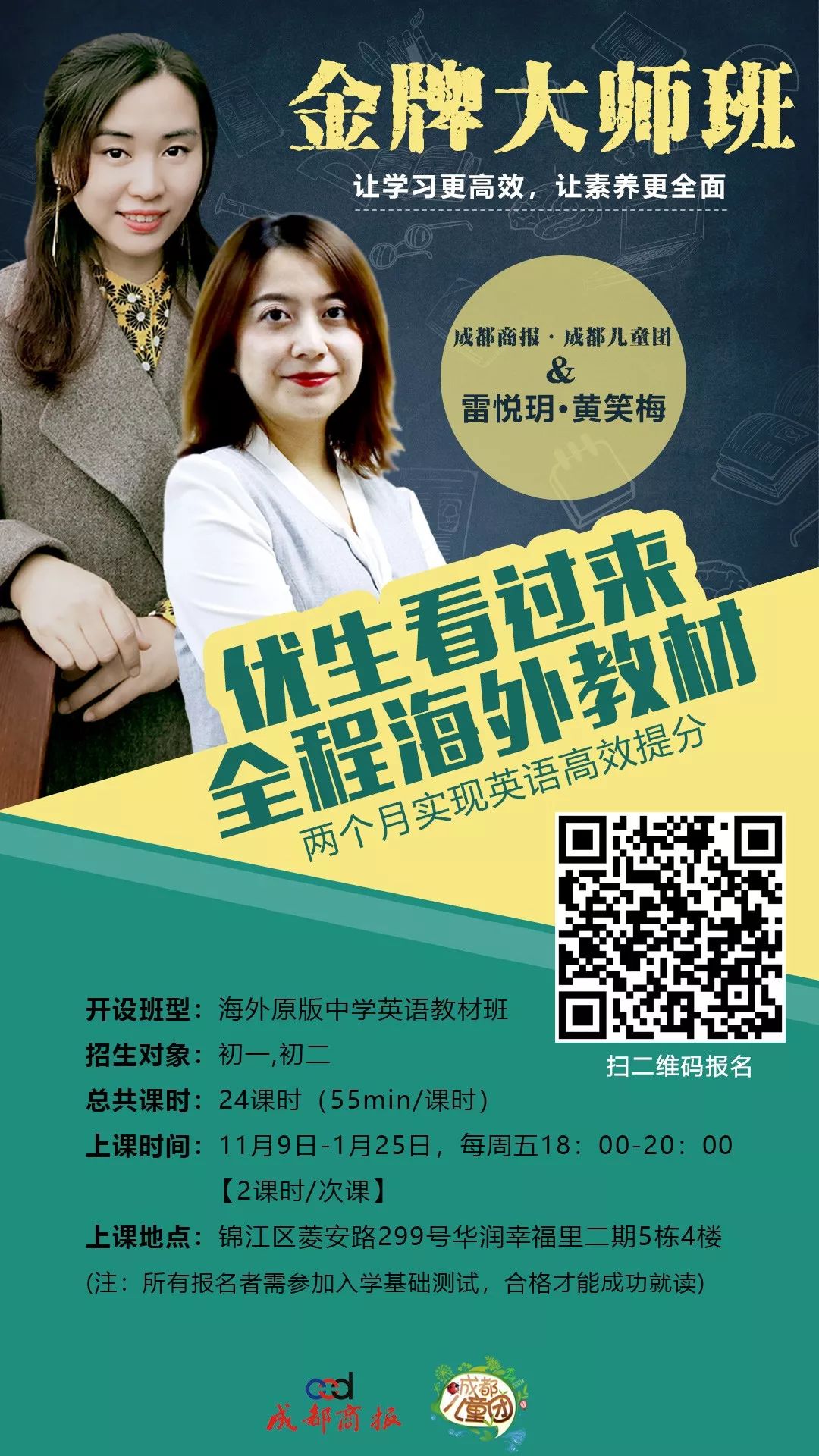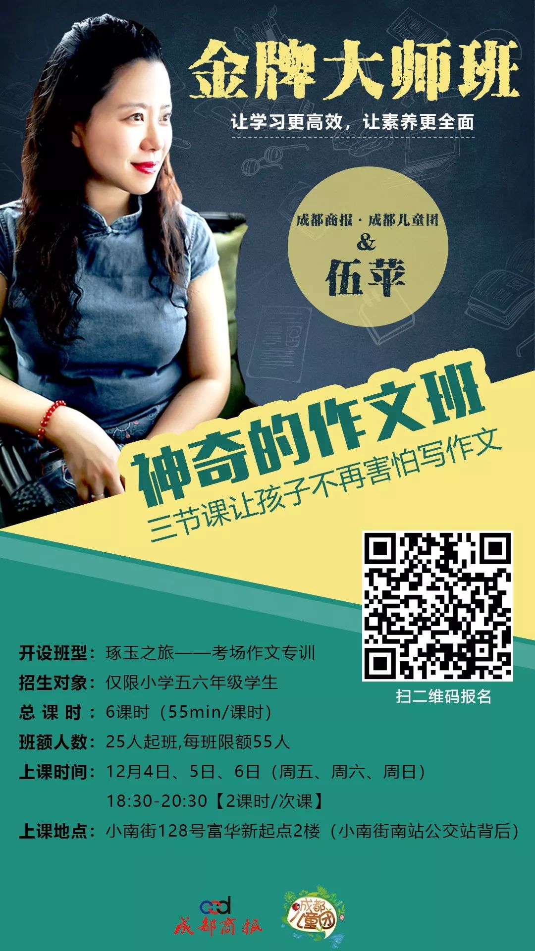 如果你正在为孩子的周末提升犯愁,如果你也想全面提升孩子的综合素养,欢迎扫描下方二维码进入报名通道并加入我们的微信群,任何关于本次金牌大师班的疑问以及你在孩子教育上的任何疑问,成都商报·成都儿童团的多位资深教育记者都将一对一倾情解答。