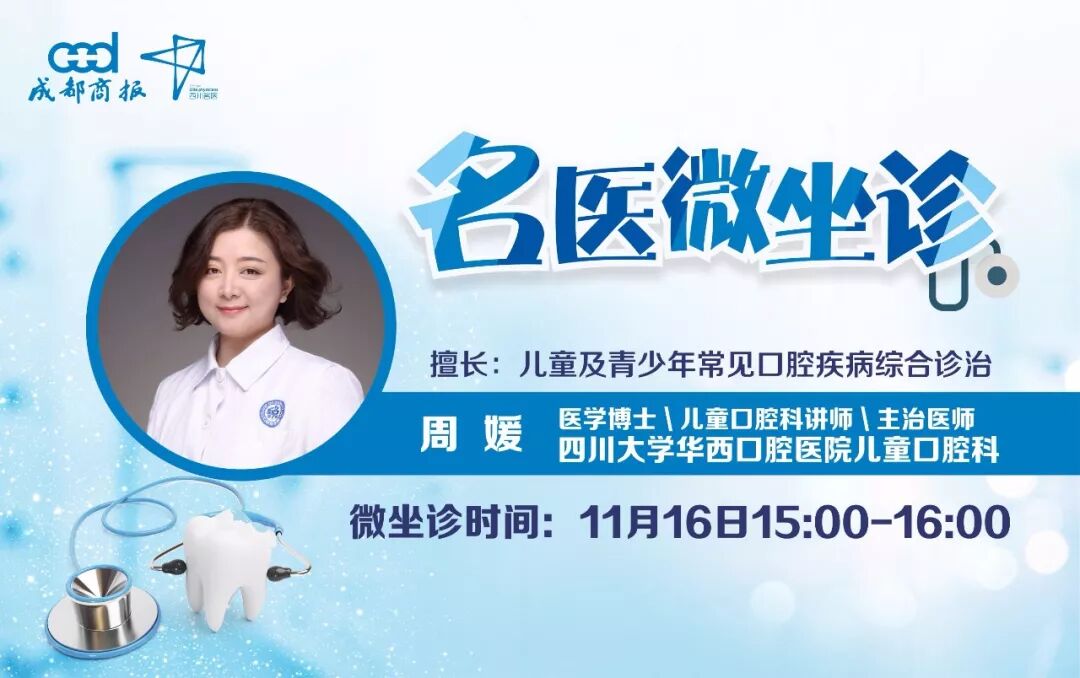 本期微坐诊,我们特意邀请到四川大学华西口腔医院儿童口腔科周媛,来与我们聊聊小孩子口腔清洁与健康的那些事儿,在今日的15:00-16:00进入直播间,即可与周媛医生在线交流。