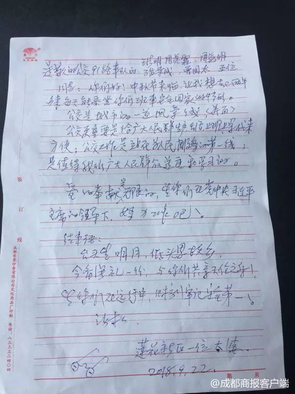 ▲九旬太婆的感谢信