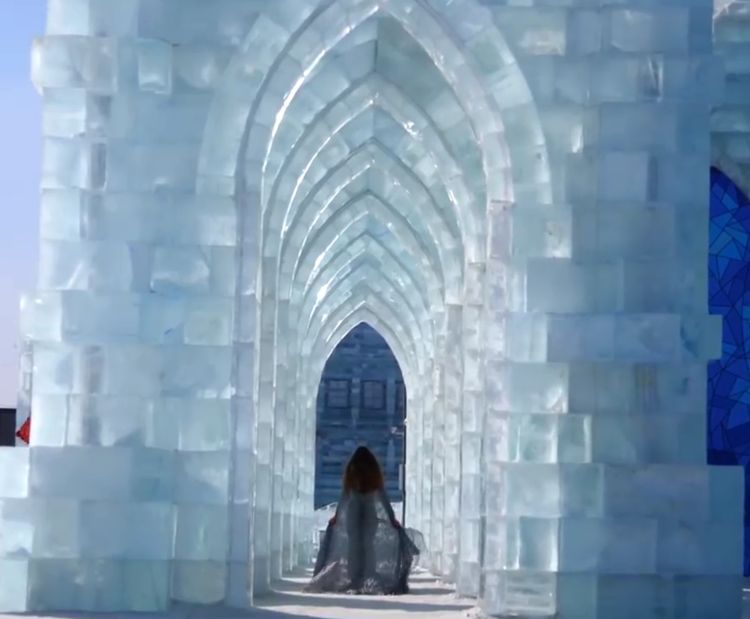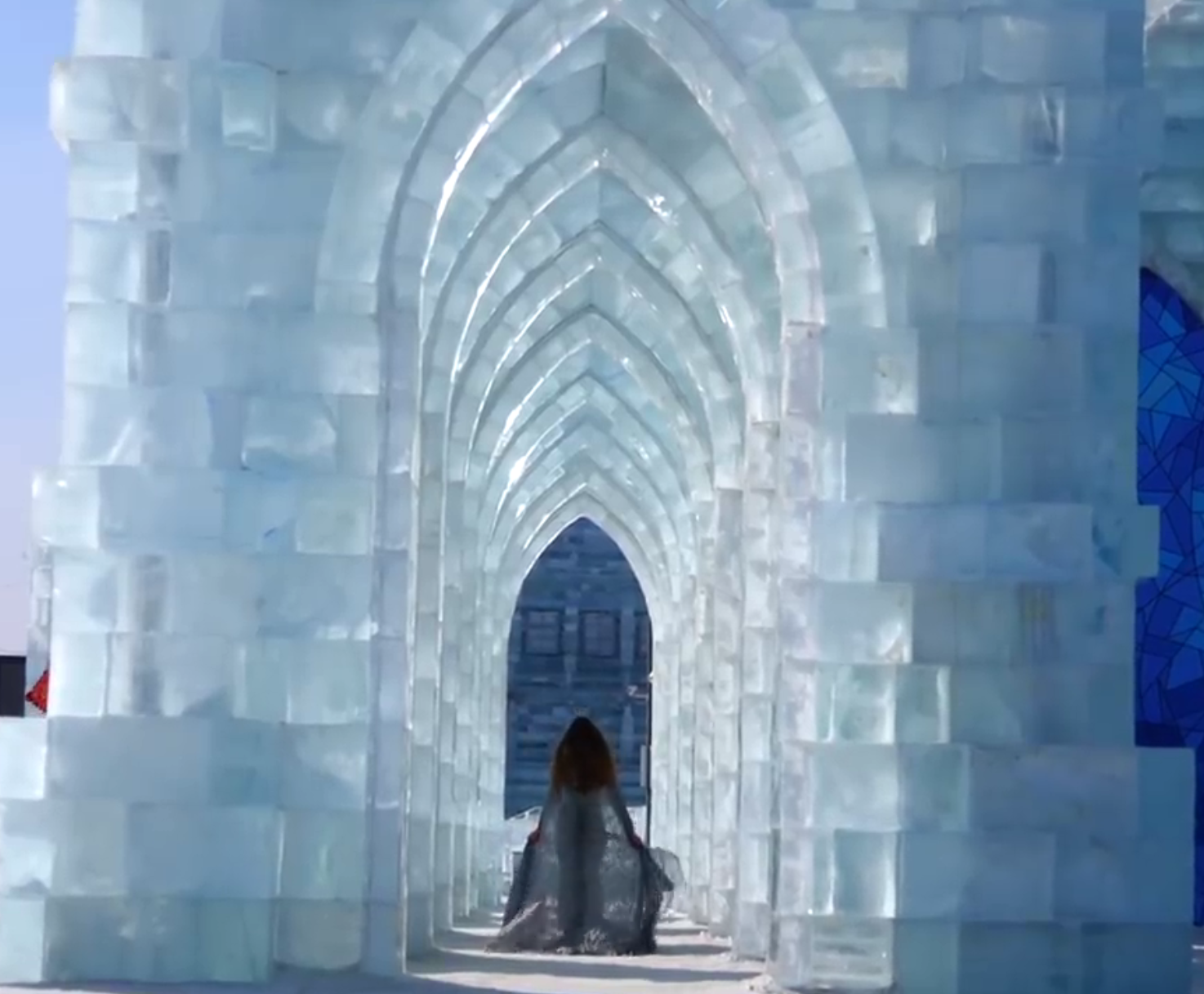这条“自带仙气”的视频中,一位“冰雪女王”在晶莹剔透的冰城堡里优雅轻快地跑过。