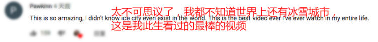 “太不可思议了,我都不知道世界上还有冰雪城市,这是我此生看到的最棒的视频。”