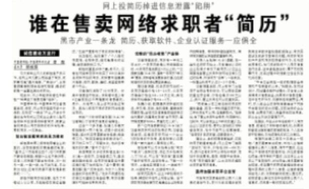 中国青年报记者调查发现,目前,网上简历售卖市场十分活跃,已形成“一条龙”产业。