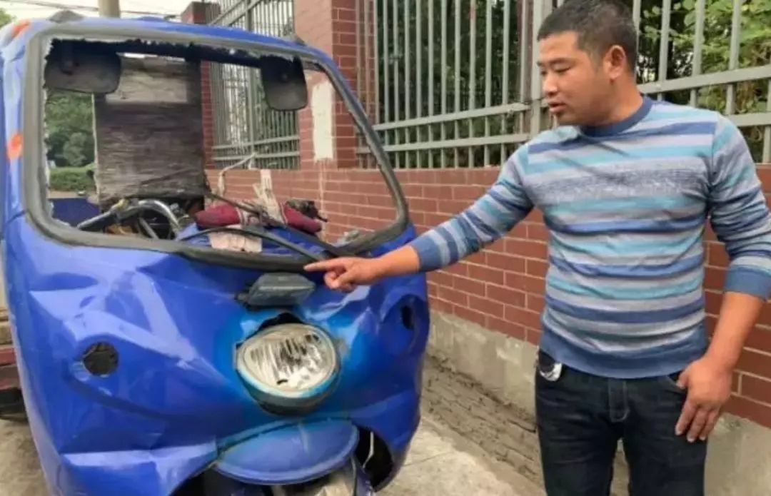 事故中,刘建军“死里逃生”,他的三轮车被压坏。