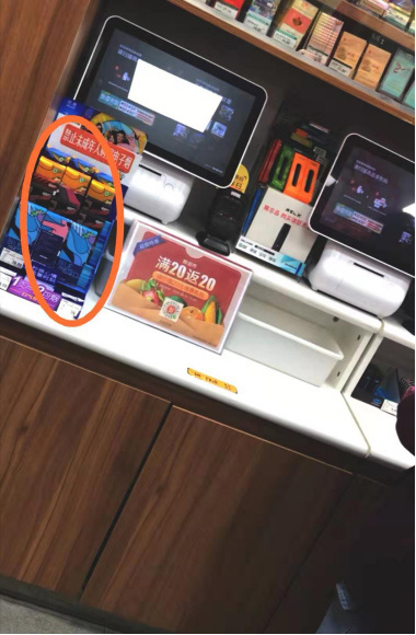 ▲北京一家便利蜂自助结账设备旁,圆框内为电子烟