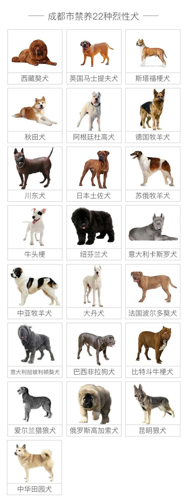 和“成都市禁养22种烈性犬”一样,各个城市出台禁养犬名单,最重要的考量为:将大型、烈性猛犬按犬种分类进行禁养,以期从源头杜绝犬只伤人事件的发生。