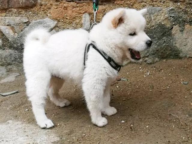 一只白色圆头短耳短腿蓬松毛的田园犬。等等,你不是松狮吗?