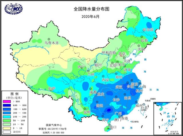 降雨不仅偏早,还偏多。据统计,全国6月平均降水量达110.9毫米,较常年同期偏多12%,为1961年以来第九多(1998年为历史同期第一多)。其中,东北中北部、西北东南部、江淮、江汉、江南北部、西南东部及广西东北部、西藏中部等地,降水普遍比常年同期偏多5成至1倍。黑龙江东部、江苏大部、安徽大部、湖北中部、湖南北部甚至偏多1—2倍。如果按省份排个名的话,湖北降水量为历史同期最多,江苏、黑龙江均为历史同期次多,安徽为第三多。
