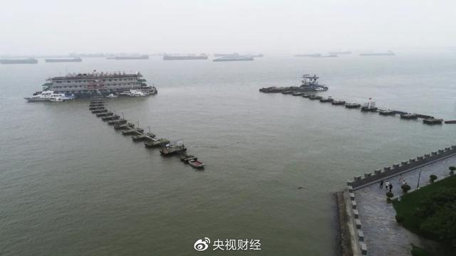 △10日,南京三汊河长江段,江上大桥引桥部分被淹。