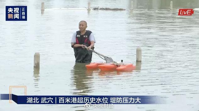 湖北黄冈武穴市连接长江的官桥大港(原百米港),是武山湖周边地区排涝的主要通道。今天11时,官桥大港水位已达22.88米,超历史最高水位0.1米,距离设计最高水位仅差0.24米。目前,当地正全力巡堤查险、处险。