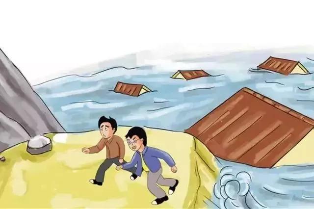 一定要保持冷静,迅速判断自己周边环境,尽快向山上或较高地方转移,如一时躲避不了,应选择一个相对安全的地方避险。