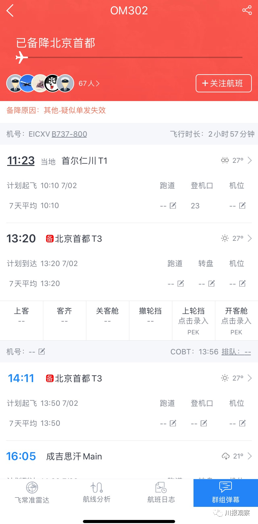 就在上周四,蒙古航空一航班也挂7700紧急代码,备降首都机场。