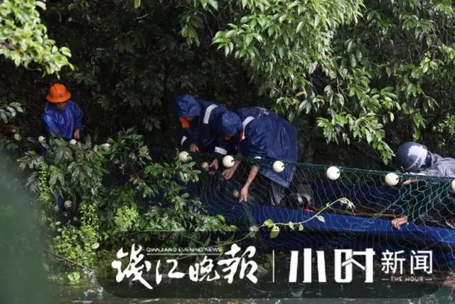 “各小组请注意,立即启动拦网防洪应急预案”,随着新安江渔政分站站长下达的命令,穿着雨衣雨裤和救生衣的渔政、拦网管理人员立即分头乘船消失在暴雨中。