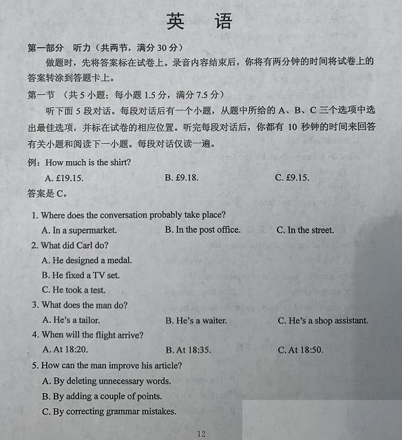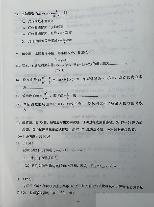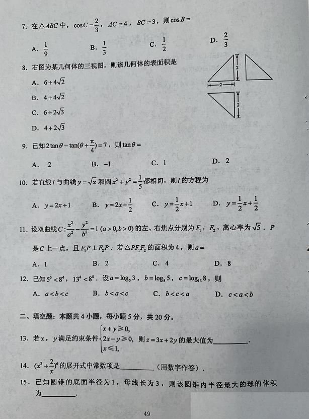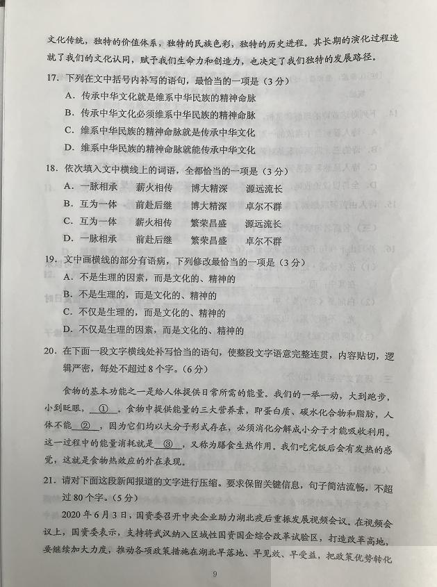 超清!2020年四川高考真题+答案!(文理全科汇总)