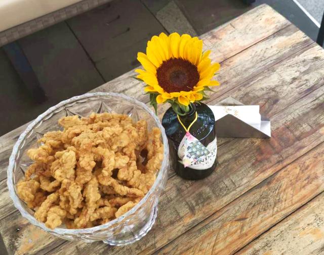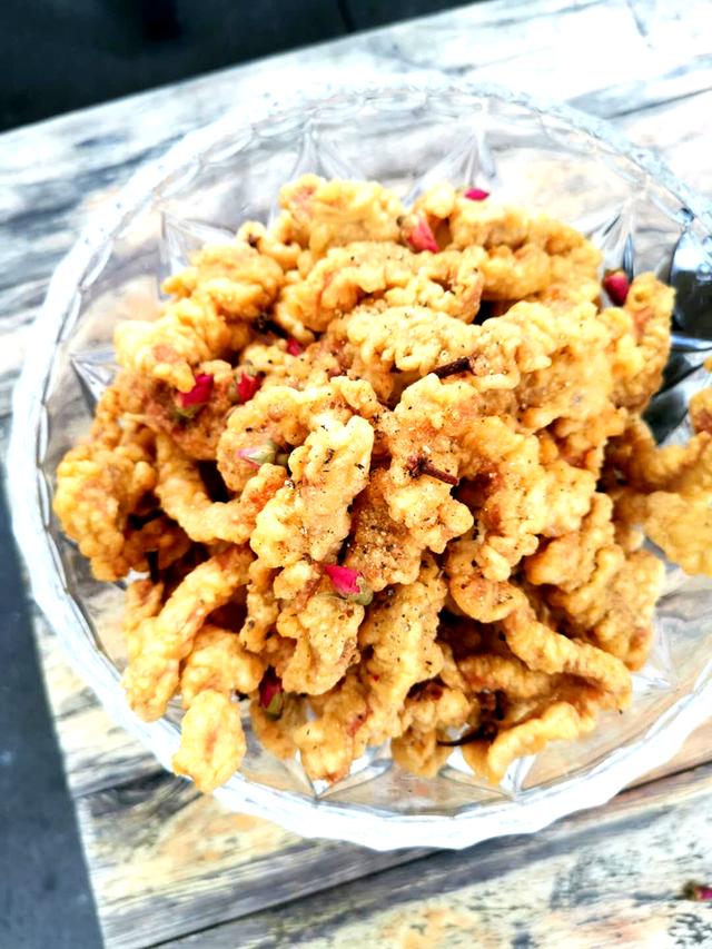 味道嘛,有区别于我们常吃过的传统酥肉。刚炸出的小酥肉酥酥脆脆,既有黑胡椒的丰富口感,又透着丝丝丁香的香气,还另有玫瑰花瓣点缀,完全是小酥肉的“西式吃法”嘛,想尝!