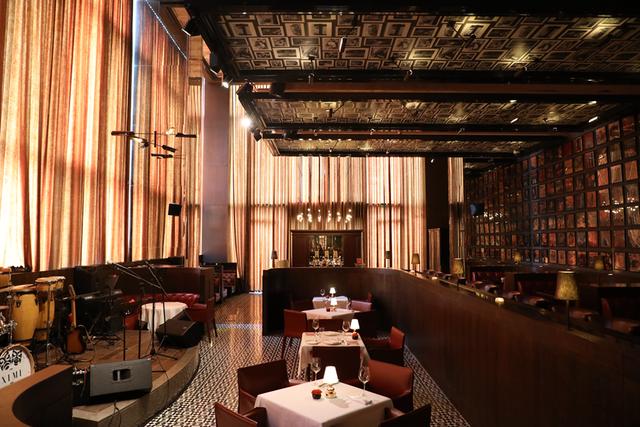 酒廊分为两个不同区域,一个装潢华丽,拥有独立表演舞台的室内区域,另一个则是户外的篝火区域。