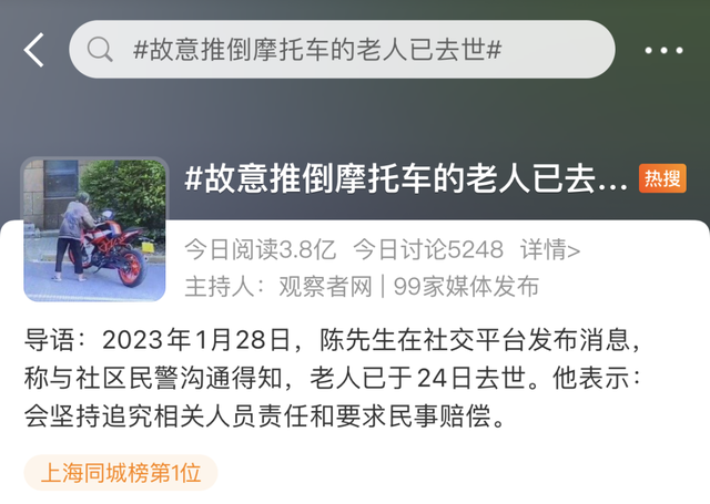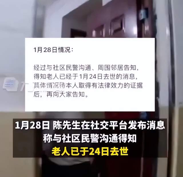 2023年1月28日,陈先生在社交平台发布消息,称与社区民警沟通得知,老人已于24日去世。他表示:会坚持追究相关人员责任和要求民事赔偿。
