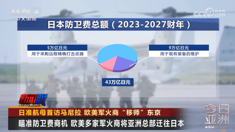日媒认为,欧美军火商的这番动作一方面反映出他们对东北亚地缘政治局势变化的关注,另一方面也是看中了日本大幅增加防卫费所带来的商机。而根据岸田政府的计划,2023-2027财年,日本防卫预算总额将达到43万亿日元,是此前五年的1.6倍。这43万亿日元中,有5万亿日元将用于采购远程精确打击武器,9万亿用于现有装备的维护。