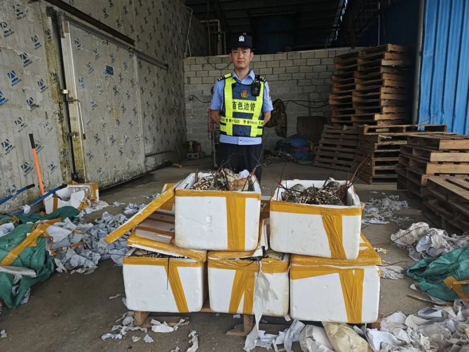 由于案发地点位于边境附近,现场及周边无任何人员,也没有发现该批龙虾的任何合法有效手续,民警初步判定该批活体龙虾为走私入境货物。