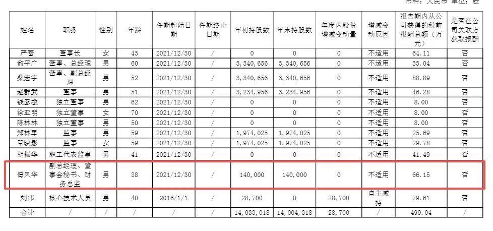 据公司财报,2024年傅风华从公司获得的税前报酬总额为66.15万元。2023年薪酬为62.86万元,2022年薪酬为57.44万元。