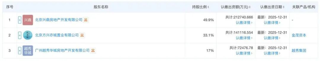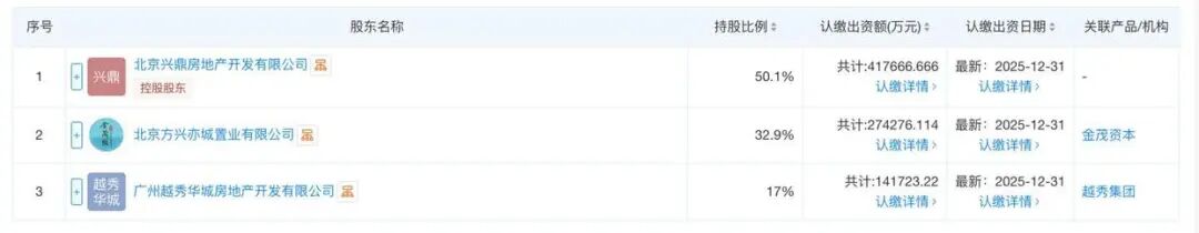 据天眼查最新信息,股权穿透后,北京兴昶房地产开发有限公司(紫京宸园项目公司)由中建智地持股50.1%、中国金茂持股32.9%、越秀地产持股17%;北京茂越置业有限公司(璞樾项目公司)由中建智地持股49.9%、中国金茂持股33.1%、越秀地产持股17%。