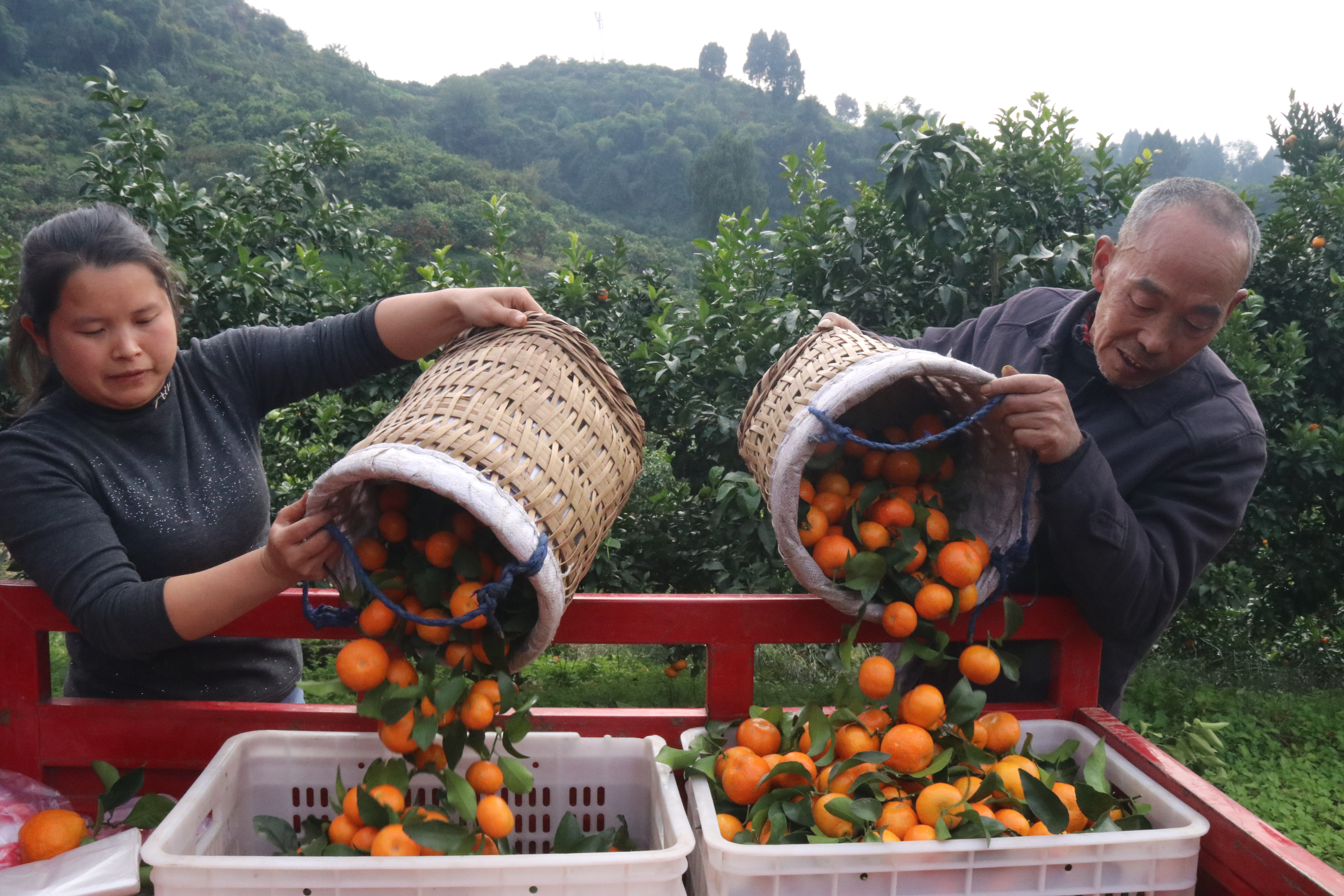 桂花村村民李连明从上世纪80年代开始种植柑橘,起初仅利用自家土地种植了3亩,以椪柑、无核橘为主。2016年,为方便柑橘储存,李连明专门在屋前修建了一个库房。2018年,李连明将附近村民闲置的土地利用起来,规模化种植爱媛、砂糖橘等,种植面积逐步扩大到30亩。平时他一个人在村上管护柑橘,每年3至5月最忙的时候,李连明便雇佣五六位村民打理果园,向每人每天支付80元工资。最近,李连明大部分时间都在果园忙碌,除了采摘,还用三轮车为客户送货。