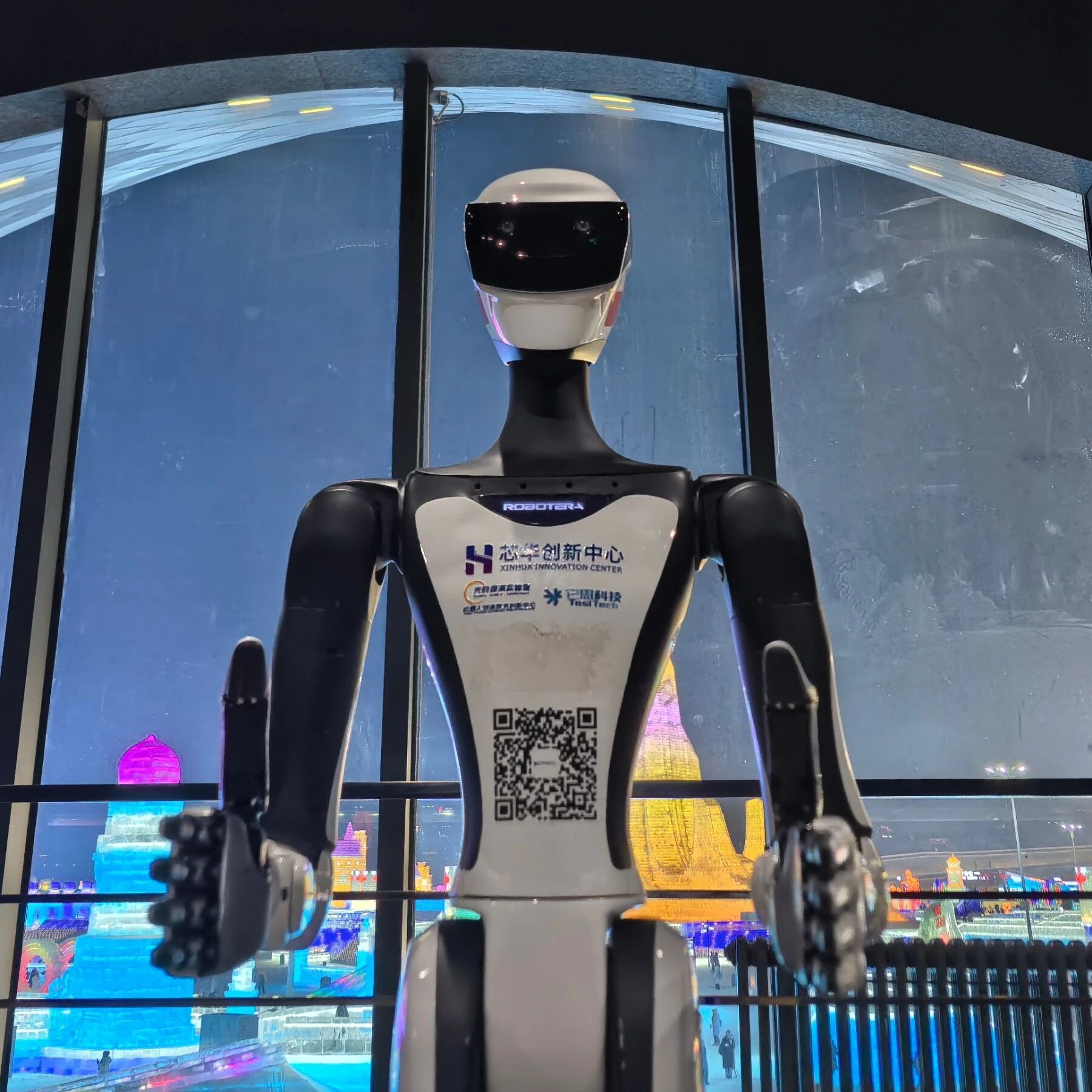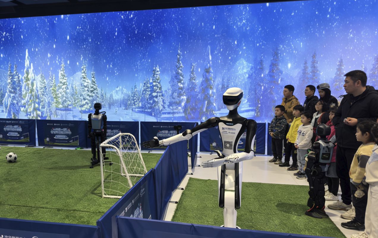 在哈尔滨冰雪大世界主场,“芯华小芯”的核心展示场景设置了机器人足球赛、共舞秀、零距离动作交互等特色体验板块,并且深度参与专场互动环节。“游客可通过操控器指令,与机器人开展多元互动,既能沉浸式感受竞技乐趣与科技展演的独特魅力,也能直观体验‘芯华小芯’灵活的互动表现。”芯华创新中心相关负责人介绍,每场互动均吸引了不少游客驻足参与,不少家庭主动与机器人合影留念,形成热门体验场景。