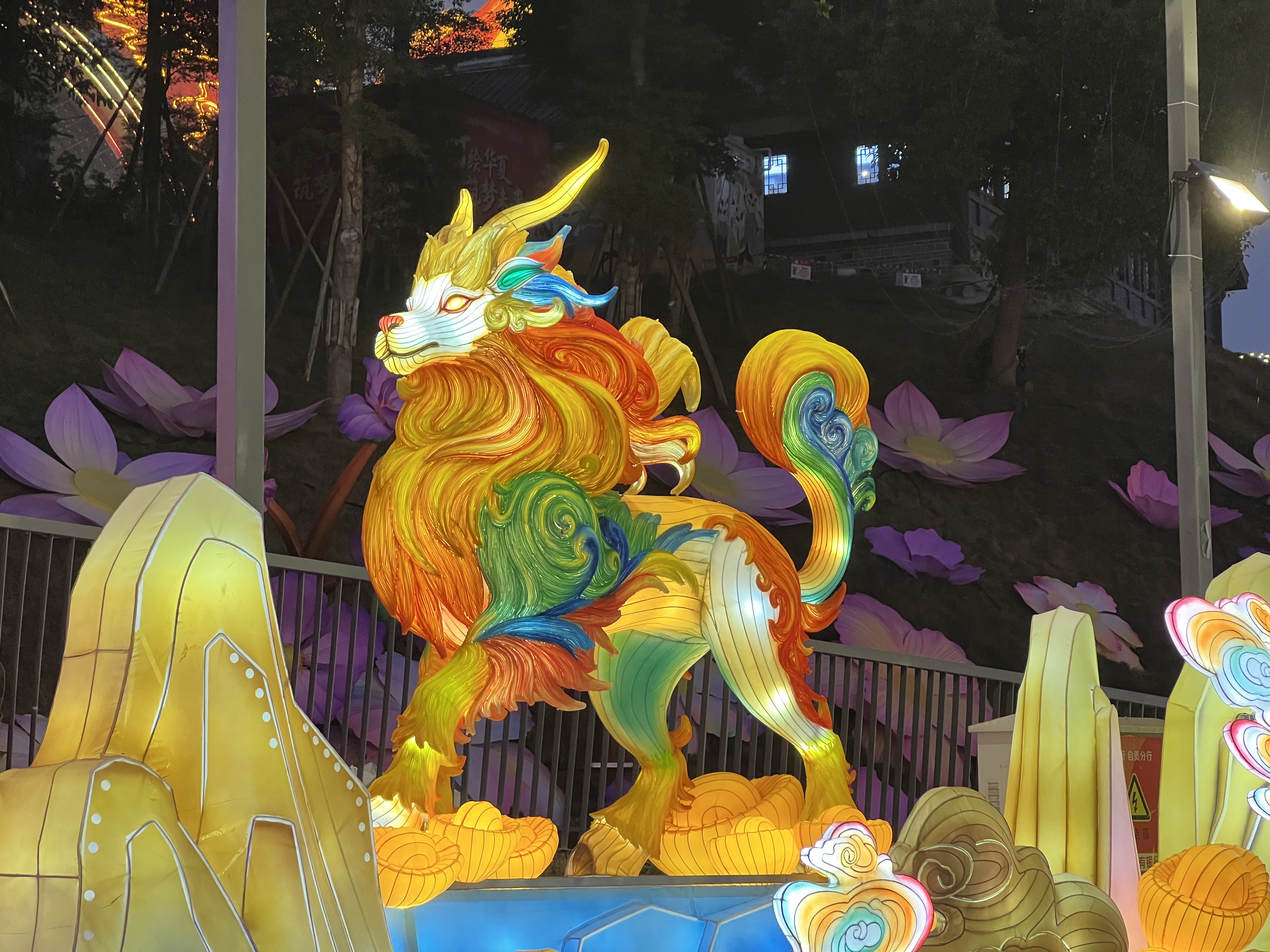 “《匠心非遗》灯组基本已完成,正在收尾。它的灵感取自《山海经》的神兽,设计团队花了3个多月时间,用青花瓷、药瓶、辣椒、稻草、泡沫、吹塑纸和扭扭棒七种材质,制作了中国狮、水麒麟、金毛犼、火凤凰、貔貅等各种上古神兽。”刘俊才介绍,其中,泡沫、稻草、扭扭棒是首次作为灯组材料现身自贡灯会。