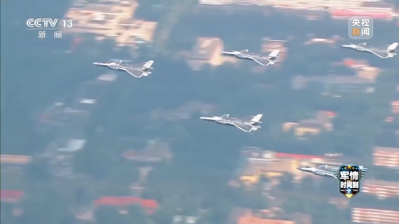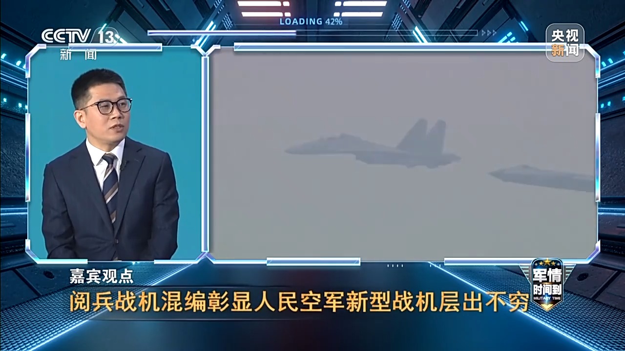 主持人:在去年九三阅兵当中,歼击机梯队的表现十分亮眼。两个楔形编队接受检阅,里边都有歼-20,这样的编队设计有什么样的考量?