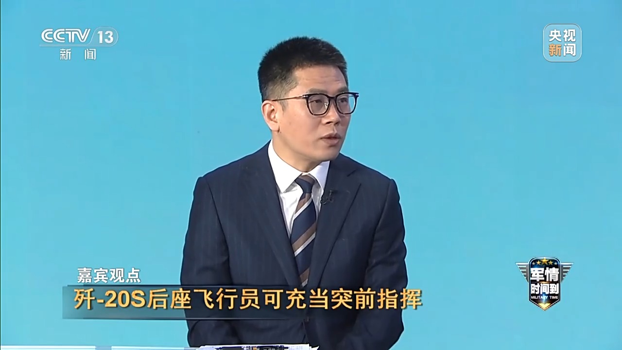 主持人:我们再来说说歼-20S,双座的歼-20,也是全球的首款双座隐身战机,双座隐身战机突出的优势是什么?后座的飞行员能够干些什么?