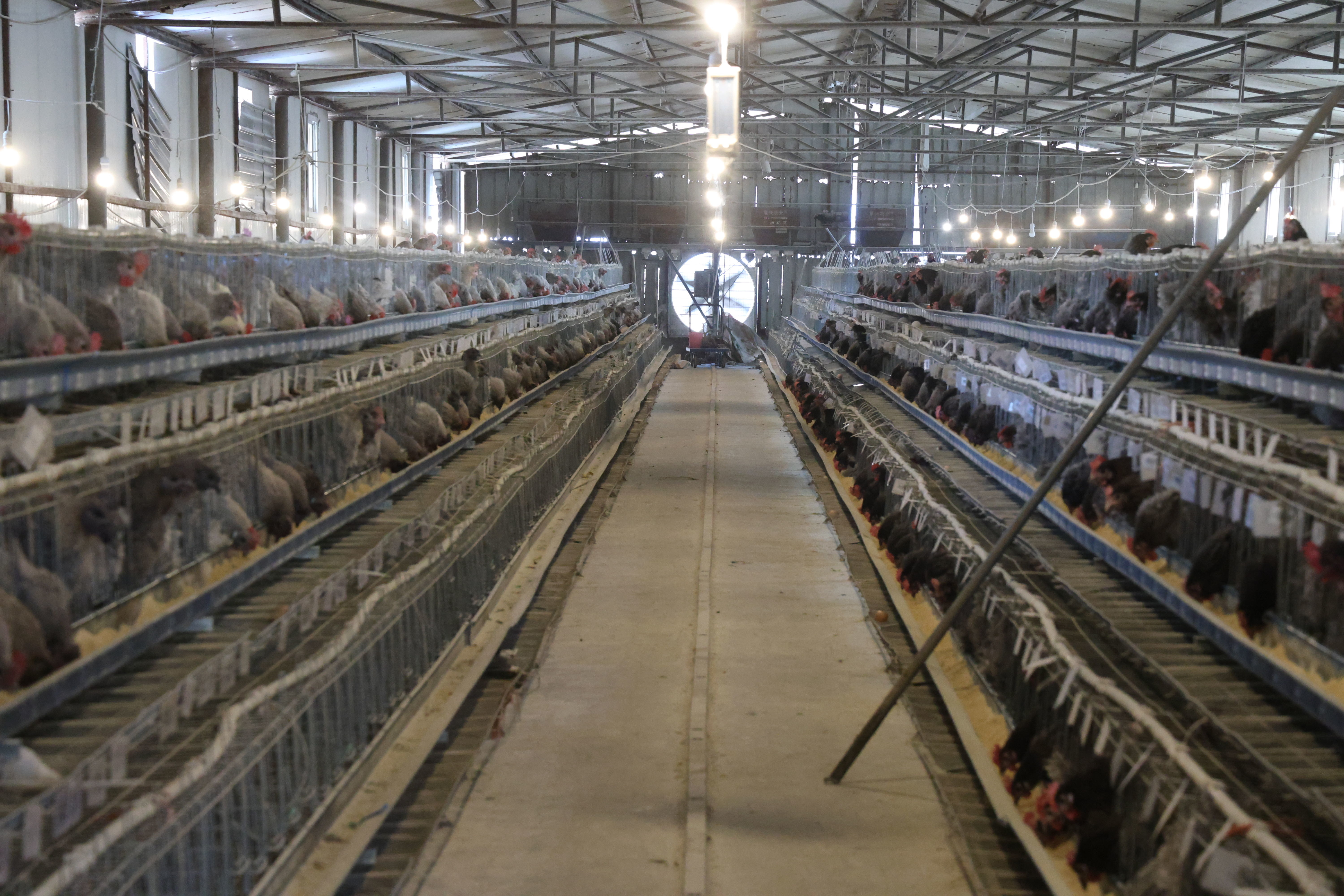 走进育种场,5万余只灰鸡在棚舍啄食,32台孵化机昼夜运转,每台孵化机里整齐码放着19200颗种蛋,工作人员不时查看仪表盘,调控温度。